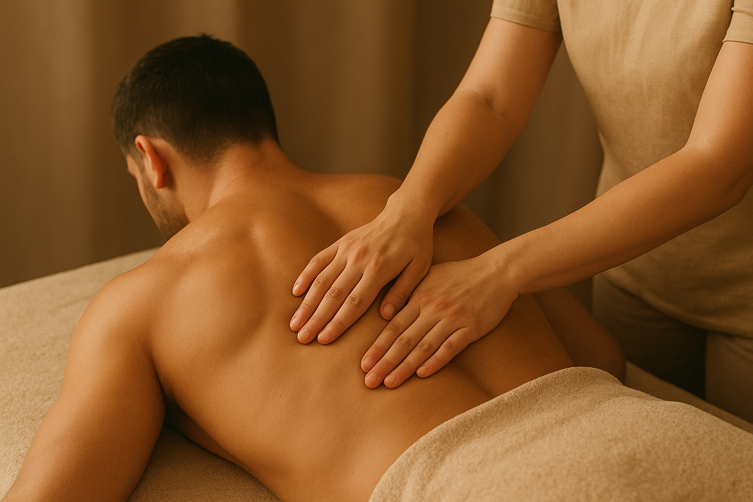 Celotělová sportovní masáž kombinující cílenou práci se svaly, fasciální techniky a baňky na záda pro maximální uvolnění. Ideální pro regeneraci po fyzické zátěži a obnovení pohyblivosti a lehkosti těla.